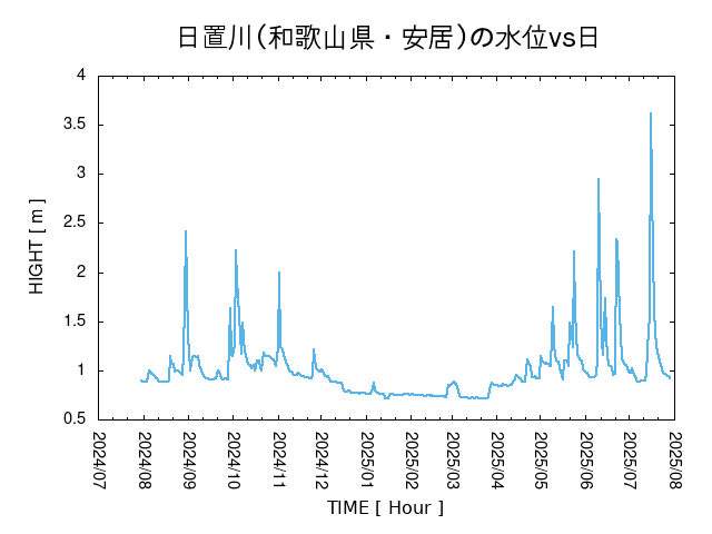 平水は独自で設定しています。多少の差はあります。また,水位の基準が途中で変更になった場合は正しくない場合があります。あくまでも目安です。